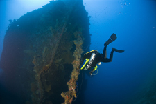 where he was able to explore the numerous wrecks of Truk Lagoon.